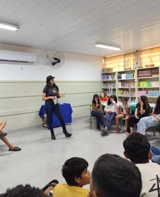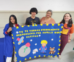 A apresentação trouxe à sala de leitura um recorte do espetáculo “O Pequeno Príncipe”, realizado pela instituição teatral, proporcionando aos alunos uma vivência única de integração entre literatura e teatro. Após a encenação, Fernanda realizou apontamentos sobre a obra e conduziu uma roda de conversa com os alunos, que puderam fazer perguntas sobre o espetáculo, os bastidores da atuação e as interpretações possíveis do texto.