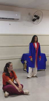 Para tornar o aprendizado ainda mais significativo, Fernanda levou até a escola uma encenação especial da cena entre o Pequeno Príncipe e a Raposa, apresentada por suas alunas Ana Júlia Escobar (Pequeno Príncipe) e Nina Jacomini (Raposa) da escola de teatro ART&TEATRO, onde ela atua como diretora e professora.