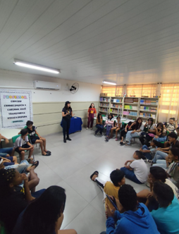 A Escola Estadual Marina Amarante Ribeiro Vasques Sanches recebeu a aluna do curso de Letras para uma atividade especial do Projeto Sala de Leitura.A ação faz parte do Programa Institucional de Bolsas de Iniciação à Docência (PIBID)