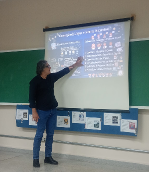 A palestra foi ministrada pelo professor Fernando Marcelo Olmo, docente da rede estadual de ensino, com atuação na Escola Estadual Engenheiro Orlando Drumond Murgel. A atividade proporcionou um espaço de diálogo entre a formação inicial de professores e a realidade da escola pública, articulando teoria e prática no ensino de Língua Inglesa.