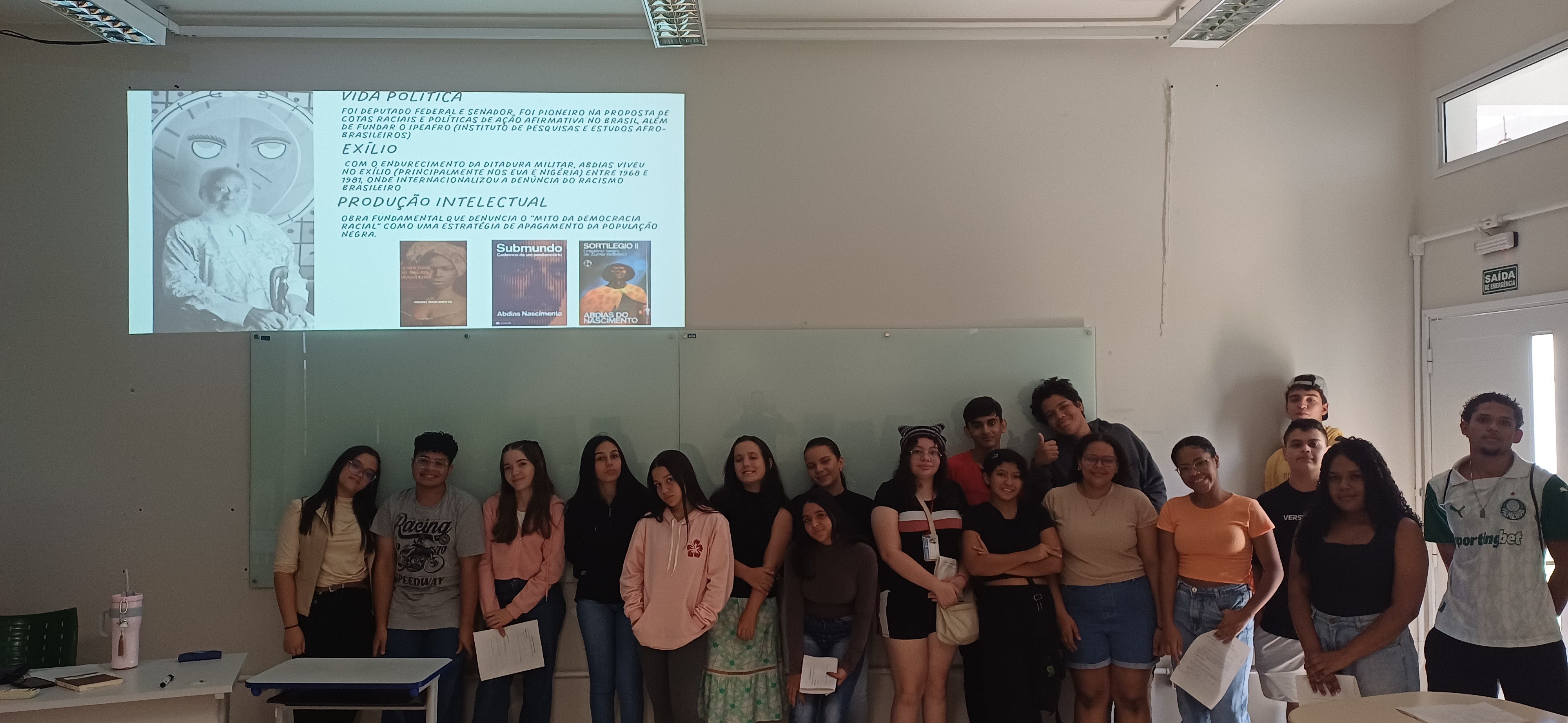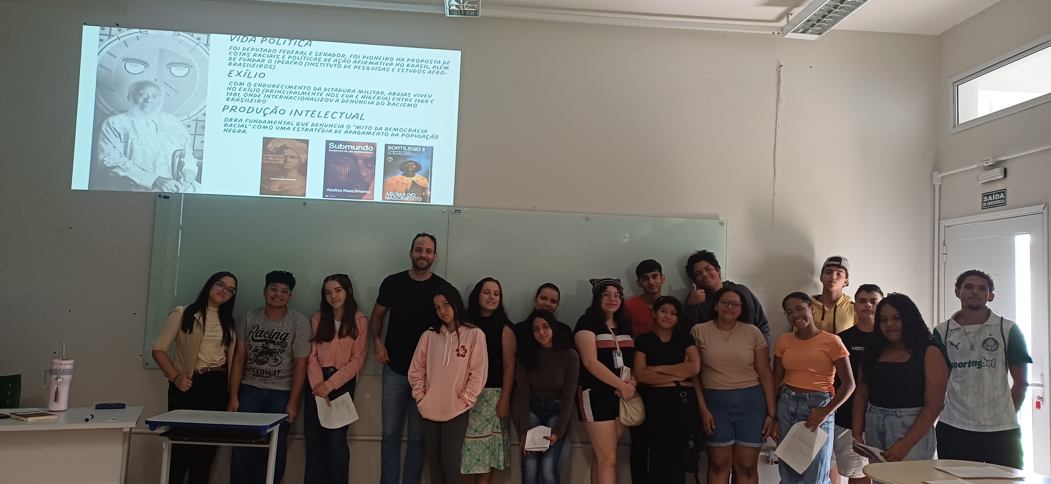 No último sábado, 11 de abril, o Instituto Federal de São Paulo (IFSP) – Campus Presidente Epitácio realizou mais uma importante ação formativa no âmbito do projeto de ensino em filosofia “Grupo de estudos e práticas em filosofia: reflexões sobre ética da alteridade e decolonialidade”. A atividade, intitulada “O mito da democracia racial – o pensamento de Abdias do Nascimento ”, reuniu estudantes dos primeiros anos dos cursos técnicos integrados ao ensino médio em um momento de reflexão crítica e aprofundamento teórico.