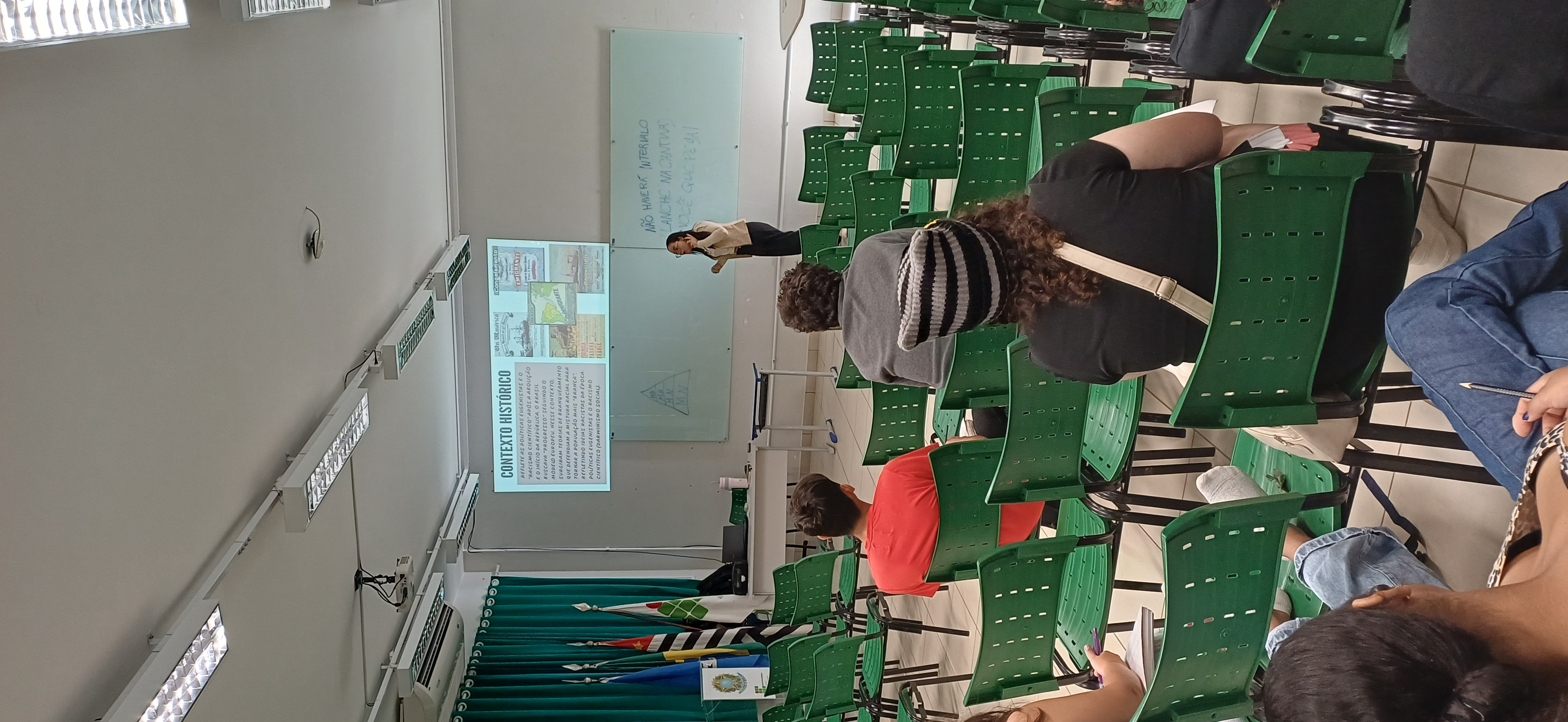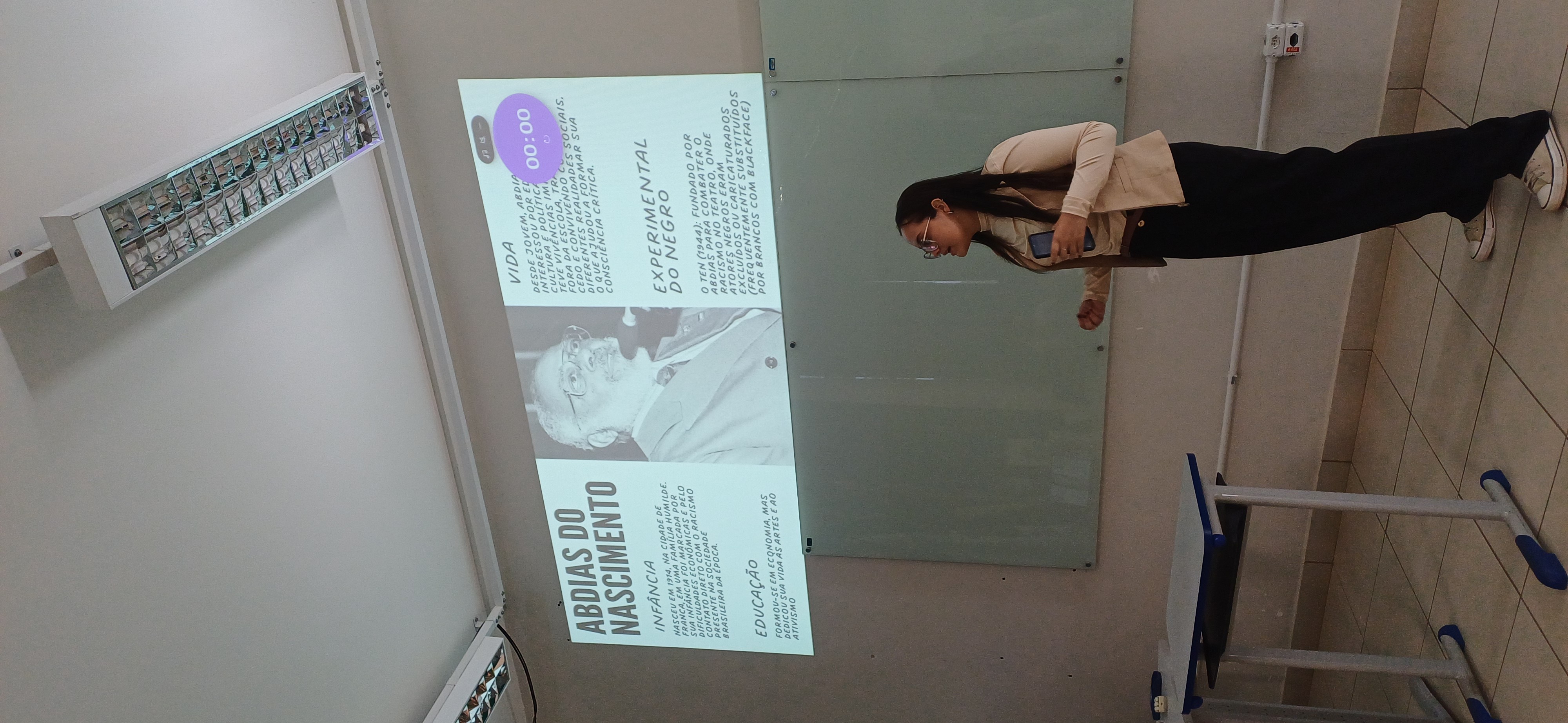 A ação foi conduzida pela estudante bolsista Nicole Emanuely Oliveira Nunes, sob a coordenação do professor Maicon José Fortunato, e teve como objetivo central problematizar as questões raciais no Brasil, tomando como referência a produção intelectual e política de Abdias do Nascimento. O pensador, reconhecido por sua atuação no movimento negro brasileiro, desenvolveu uma crítica contundente à ideia de “democracia racial”, conceito que, segundo ele, contribui para ocultar as desigualdades estruturais e o racismo presentes na sociedade brasileira.
