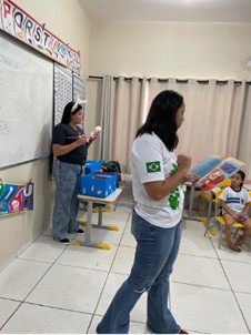 A execução da oficina foi marcada pela crescente participação e entusiasmo das crianças. A experiência proporcionou às alunas uma vivência significativa de articulação entre teoria e prática, reforçando a importância do trabalho coletivo, da criatividade e da adaptação no contexto escolar. O projeto evidenciou o papel essencial da extensão universitária na formação docente, promovendo aprendizado, reflexão e transformação social por meio da leitura.