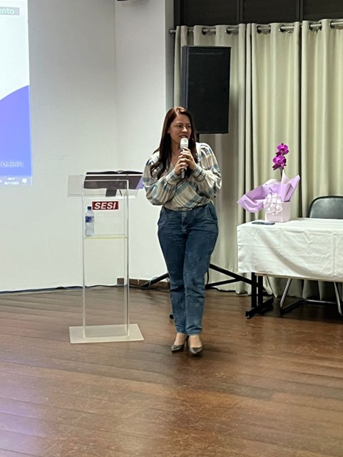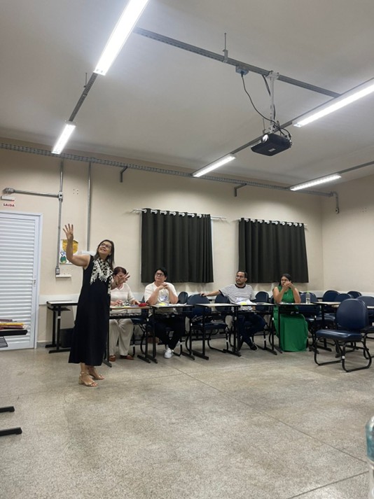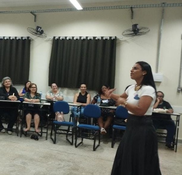 Em seguida, a professora Dra. Vania Kelen Belão Vagula ministrou a palestra A leitura literária e os espaços de mediação na escola, que discutiu práticas pedagógicas de incentivo à leitura e o papel da literatura como experiência estética e formativa.