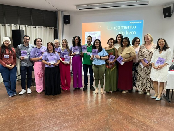 Membros do Geppes reunidos com o livro produzido pelo grupo